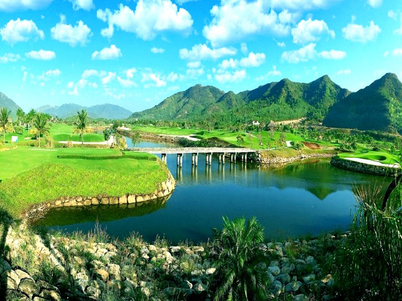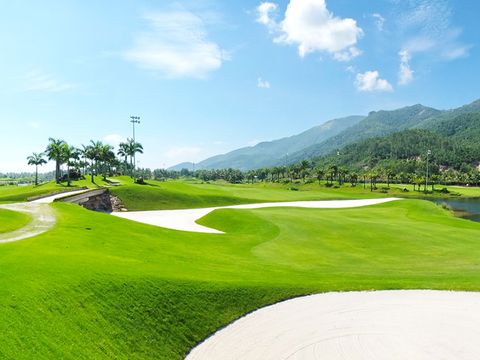 Sân golf nằm giữa cảnh quan biển xanh và núi non hùng vĩ