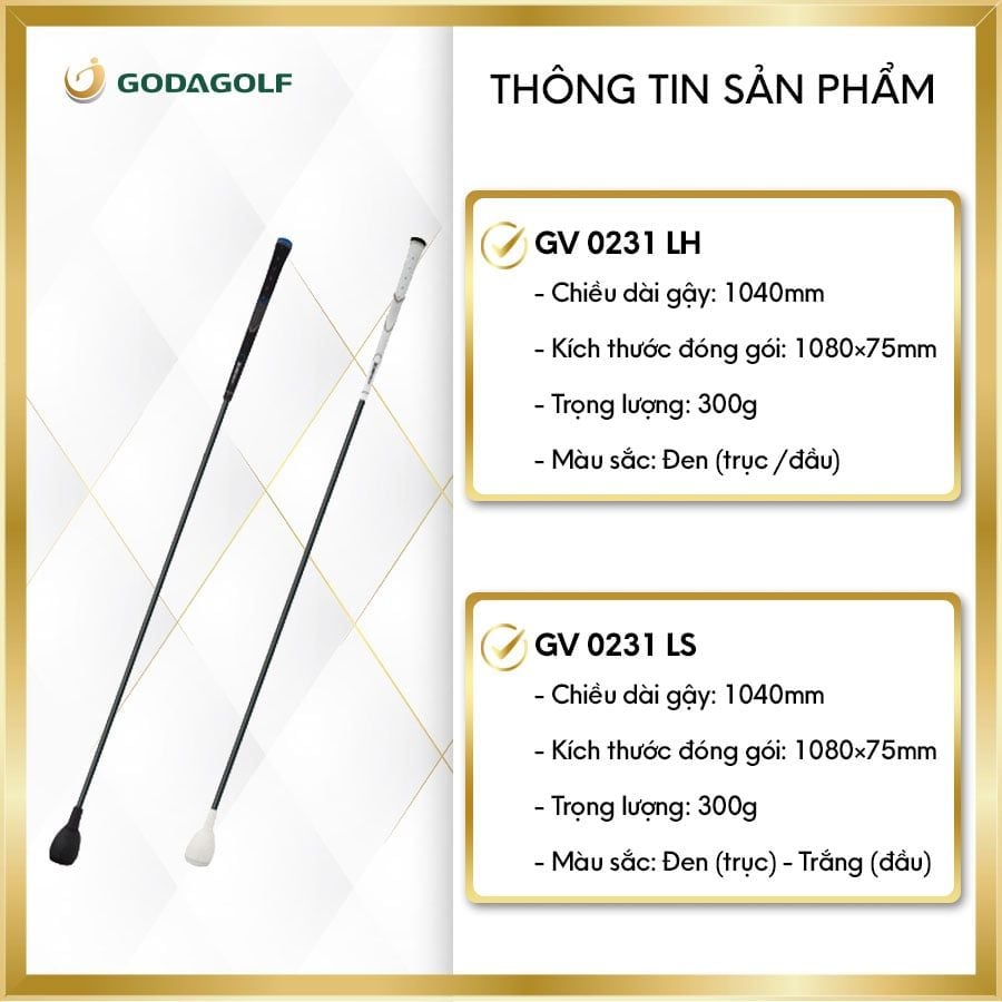 * Gậy tập luyện cứng: - Được đề xuất dành cho golfer ở tất cả các trình độ - Giúp cải thiện động tác/tốc độ khi vung gậy - Đem lại cảm giác chắc chắn