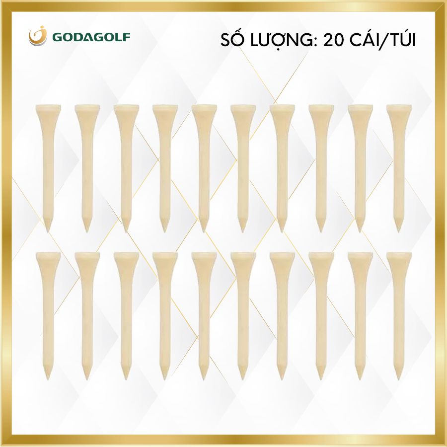 Thông tin sản phẩm: - Tee gỗ cổ điển dài Có thể dùng làm dụng cụ để chơi hoặc luyện tập - Tee gỗ cổ điển dài (dài 60 mm) - Wood Tee 60mm - Số lượng Tee: 20 cái - Chiều cao Tee: 60mm - Kích cỡ gói: 130×87(mm) - Chất liệu: Gỗ