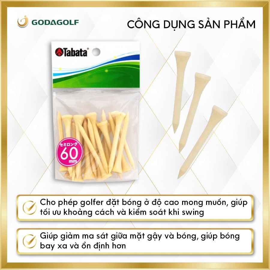 Tee Golf Gỗ Cao Cấp Tabata 60mm - Chân đỡ phát bóng GV0509 | Tabata Golf Chính Hãng