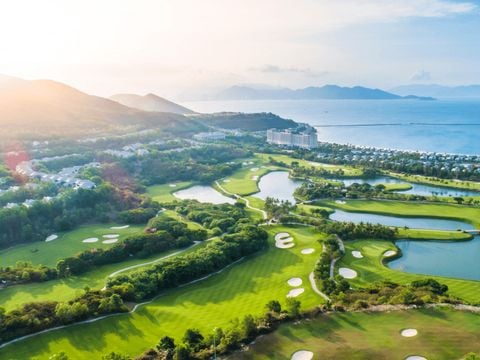 Tọa lạc trên hòn đảo được mệnh danh "quanh năm 360 ngày nắng đẹp", Vinpearl Golf Nha Trang sở hữu địa hình tựa sơn hướng thủy độc đáo, xung quanh được bao bọc bởi đồi xanh, trước mặt ôm trọn vẻ đẹp bao la của vịnh biển thiên đường.